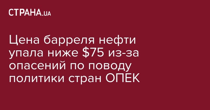 Цена барреля нефти упала ниже $75 из-за опасений по поводу политики стран ОПЕК