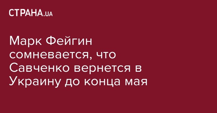 Марк Фейгин сомневается, что Савченко вернется в Украину до конца мая