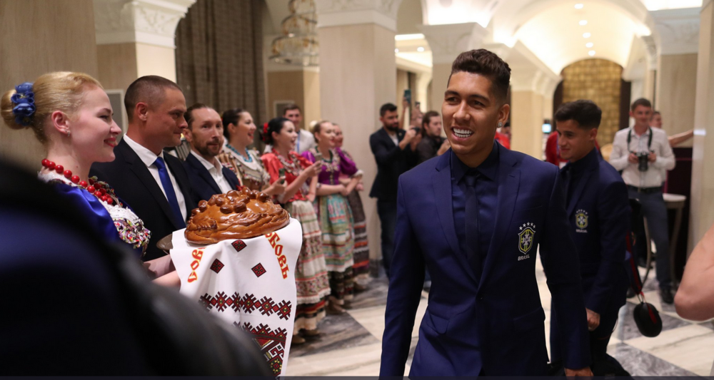 Как передает официальный Twitter пентакампеонов, в сочинском отеле бразильскую делегацию встретили хлебом - солью.