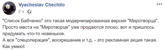 "Список Бабченко" это такая модернизированная версия "Миротворца". Просто места на "Миротворце" уже продаются плохо, вот и пришлось придумать что-то новенькое.
