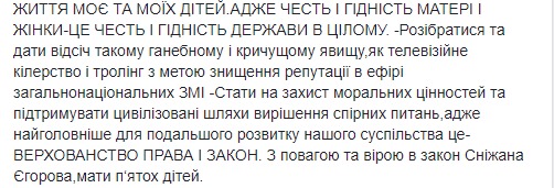 Егорова обратилась к Порошенко не только как к Гаранту Конституции, но и как "к мужу и многодетному  отцу, ради общего будущего всех детей и матерей Украины".