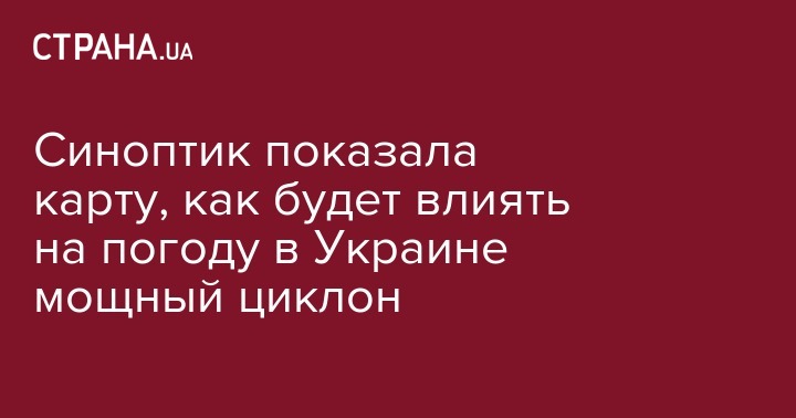 Синоптик показала карту, как будет влиять на погоду в Украине мощный циклон