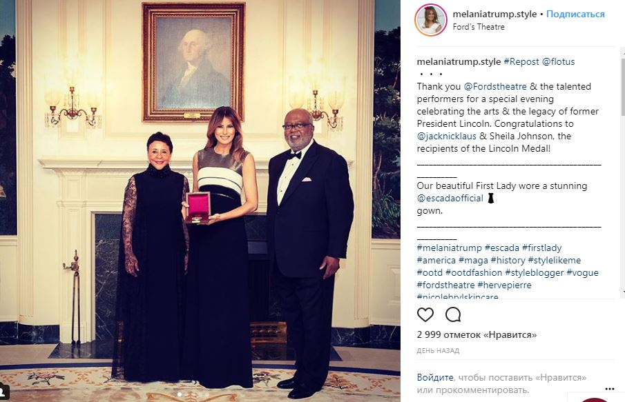 Первая леди США Мелания Трамп, спустя почти 30 дней после операции на почках, вернулась к обязанностям первой леди страны. Вчера она выступила на ежегодном гала-концерте Театра Форда в Вашингтоне.