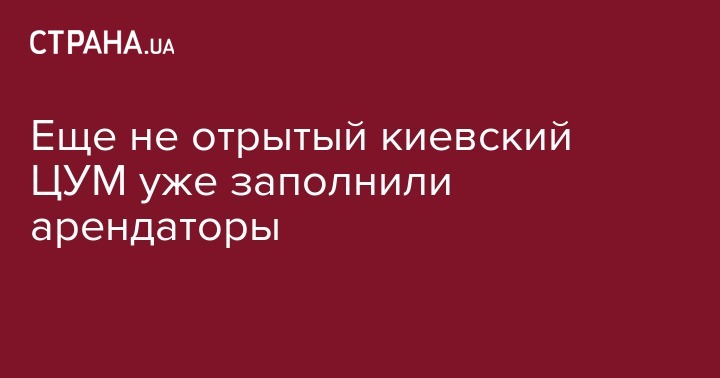 Киевский ЦУМ, который пока не открыт, уже заполняется арендаторами. Об этом сообщил директор по аренде ЦУМа Андрей Мажара, сообщает Интерфакс-Украина.