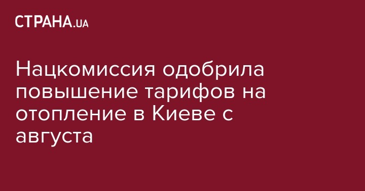 Национальная комиссия госрегулирования энергетики и коммунальных услуг (НКРЭКУ) одобрила с 1 августа увеличение тарифа для коммунального предприятия Киевской городской государственной администрации (КГГА) "Киевтеплоэнерго" на производство тепловой энергии, которая используется для предоставления населению услуг по централизованному отоплению и централизованному снабжению горячей водой на 0,2%, или на 1,53 гривен/Гкал, до 784,58 гривен/Гкал по сравнению с действующими тарифами энергокомпании "Киевэнерго" (без НДС).