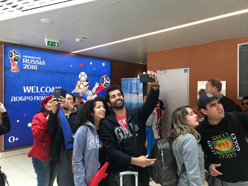 15:48  Фанаты Саудовской Аравии в московском аэропорту Шереметьево.