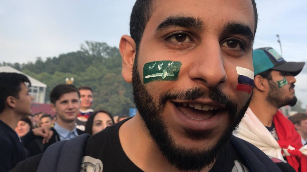 15:02  Болельщики Саудовской Аравии, которая будет играть сегодня против России, поют в центре Москвы.