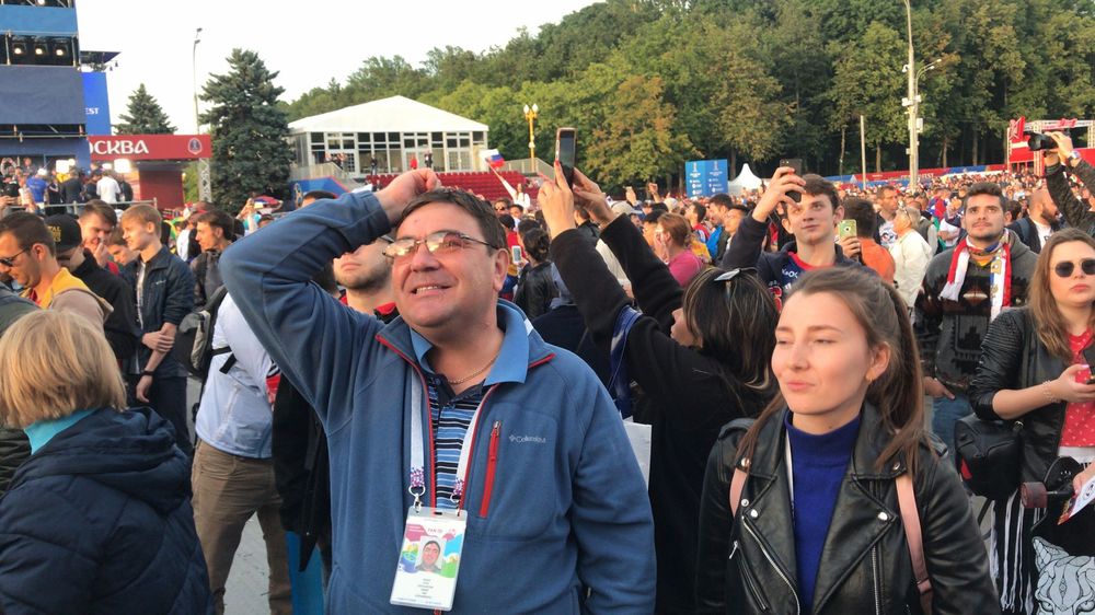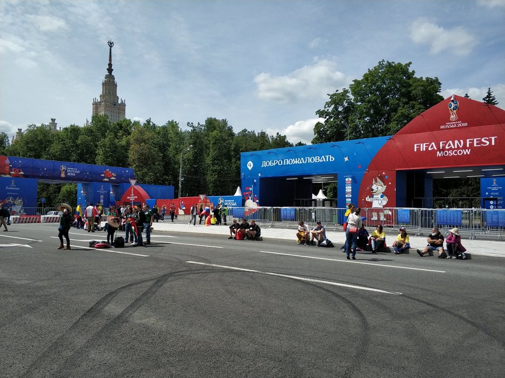 18:50  Фан-зона возле Лужников переполнена. Полиция не пускает прибывающих фанатов, отправляю их на другие входы, но там также не пускают. Группа из 50 болельщиков прорвала кордон и помчалась навстречу футболу.