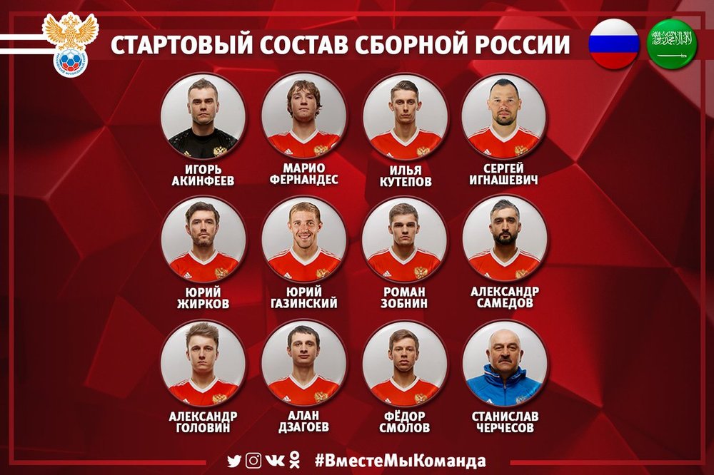 16:43  Российская сборная в Twitter опубликовала стартовый состав.