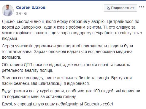 Об этом Шахов написал на своей странице в соцсети Facebook