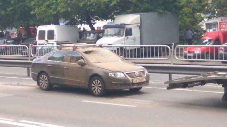 На Чоколовском бульваре автомобиль залило грязью из канализации, фото: Авто-Киев
