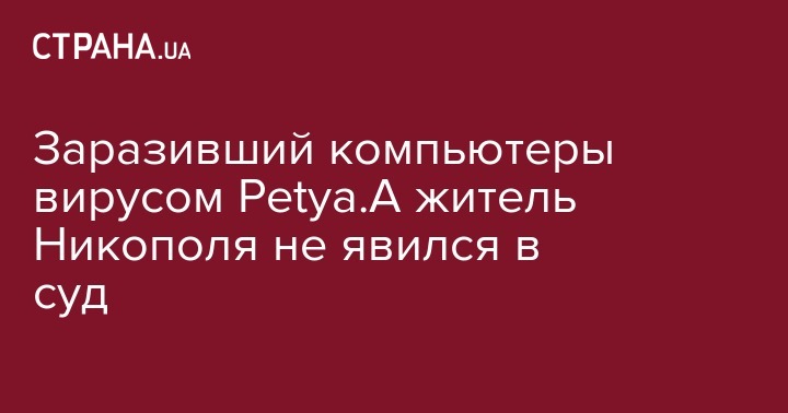 Заразивший компьютеры вирусом Petya.A житель Никополя не явился в суд