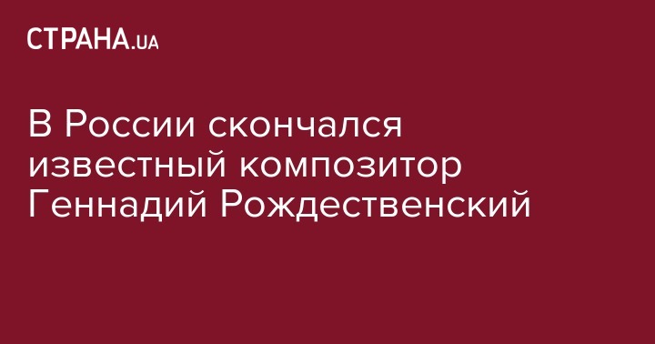 В России на 88-м году жизни скончался дирижер и пианист Геннадий Рождественский. Об этом передает "Интерфакс" со ссылкой на источник в больнице.