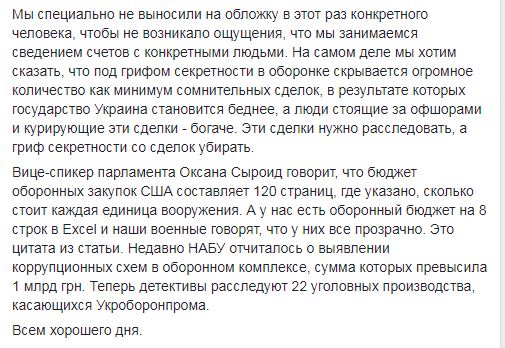 Он напомнил, что ранее журнал уже получил два иска от главы комитета Рады по вопросам нацбезопасности и обороны Сергея Пашинского (Народный фронт) и компании Укроборонпром.опубликовали за расследование фактов коррупции в украинской "оборонке".