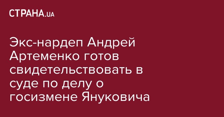 Лишенный гражданства и статуса нардепа Андрей Артеменко подал заявление в Оболонский районный суд Киева о готовности дать показания в качестве свидетеля по делу о госизмене экс-президента Украины Виктора Януковича.