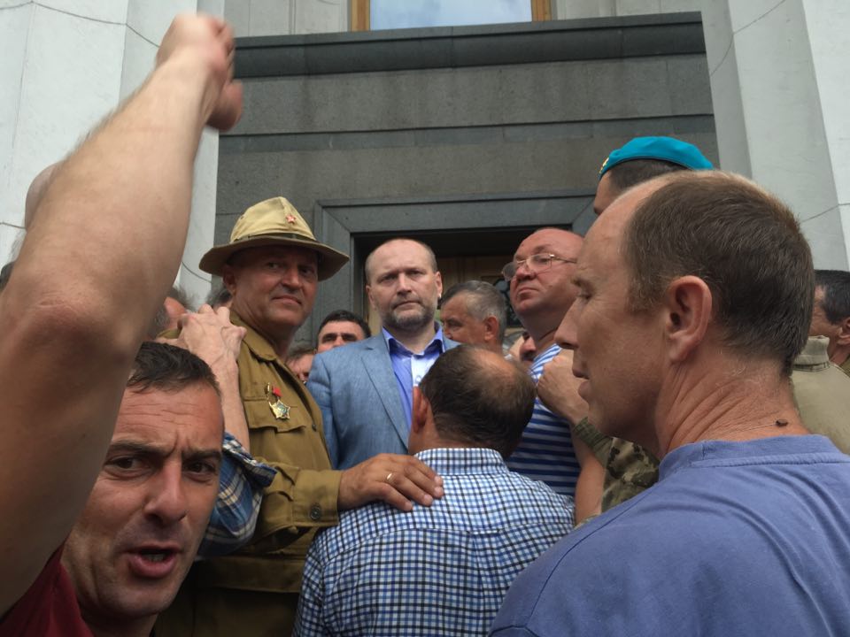 12:17 К митингующим вышел нардеп Борислав Береза, который согласился завести несколько человек внутрь парламента.