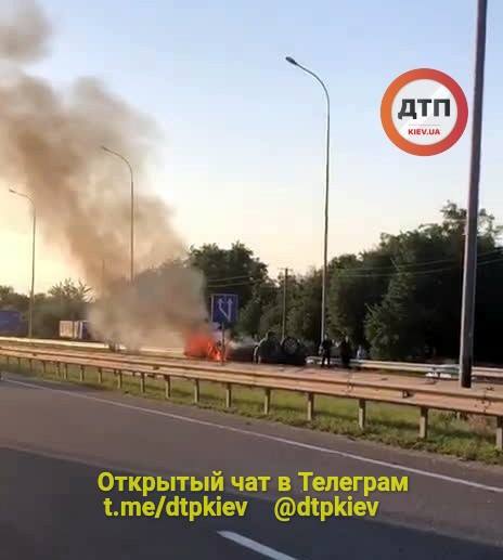 В понедельник, 19 июня на 180-м километре трассы Киев-Харьков "летевшая" на большой скорости легковая машина Audi врезалась в отбойник и загорелась.