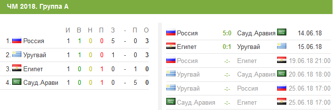 19.00 Сборная России может оформить выход в 1/8 турнира, если обыграет Египет, а Уругвай потеряет очки в матче с Саудовской Аравией.