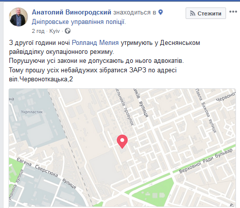 "С двух часов ночи Роланд Мелия содержится в Деснянском райотделе окупационного режима.
