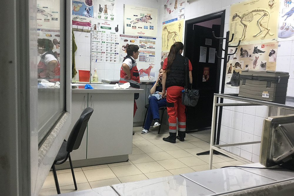 Ветеринары ночной смены впустили постороннего, мужчина резко начал вести себя неадекватно. Он набросился на сотрудников лечебницы. Сначала неизвестный напал на парня, а потом на девушку. Она пыталась спрятаться от нападающего и бегала от него по всем трем этажам клиники.