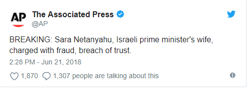 Эту информацию также подтверждает Reuters и Jersualem Post, агентства при этом ссылаются на Министерство юстиции. В обвинении сказано, что, несмотря на присутствие в резиденции повара, жена премьера заказывала еду в ресторанах, и стоимость заказов оценивается в около 100 000 долларов. Оплачивались заказ из государственной казны.