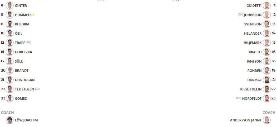 Германия: Нойер - защита Боатенг, Рюдигер, Киммих, Гектор - полузащита Дракслер, Мюллер, Кроос, Ройс, Руди - атака Вернер