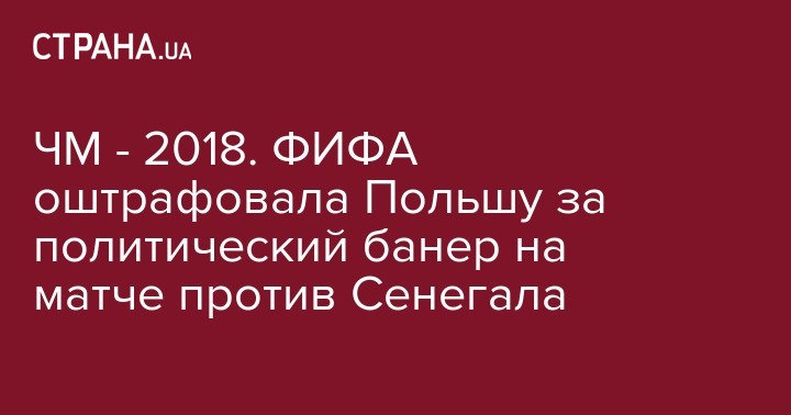 После Мексики Дисциплинарный комитет ФИФА оштрафовал и Польский футбольный союз на 10 тысяч швейцарских франков (примерно $ 10 100 - Прим.Ред.) за демонстрацию болельщиками сборной Польши политического банера во время матча ЧМ-2018 против Сенегала (1 - 2), сообщает Чемпионат.