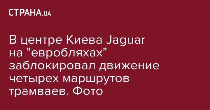 В центре Киева Jaguar на "евробляхах" заблокировал движение четырех маршрутов трамваев. Фото