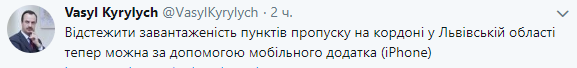 "Отследить загруженность пунктов пропуска на границе во Львовской области теперь можно с помощью мобильного приложения", - сказано в сообщении.