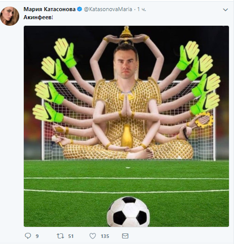 Напомним, основное и дополнительное время поединка закончилось вничью. А затем в послематчевой перестрелке вратарь россиян Игорь Акинфеев сумел отразить два 11-метровых удара.