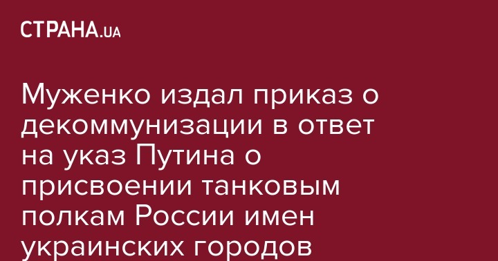 Об этом он написал на своей странице в соцсети, таким образом ответив на то, что накануне Путин присвоил танковым полкам российской армии названия украинских городов. В своем сообщении Муженко резко раскритиковал указ президента России.