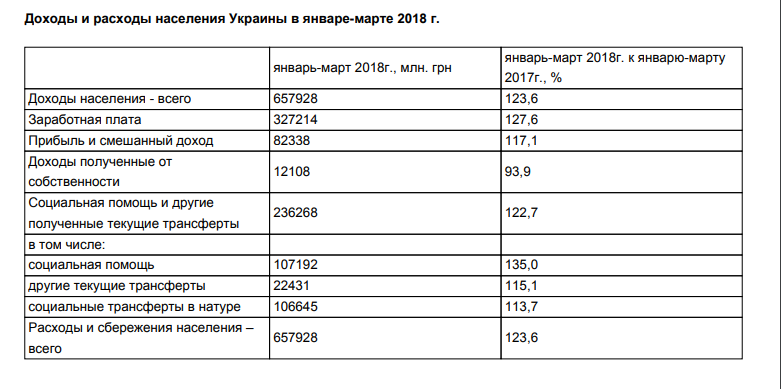 В январе-марте 2018 года доходы населения составили 657,9 млрд грн, расходы – 679,9 млрд грн, сбережения украинцев сократились на 22 млрд грн, сообщила Государственная служба статистики.