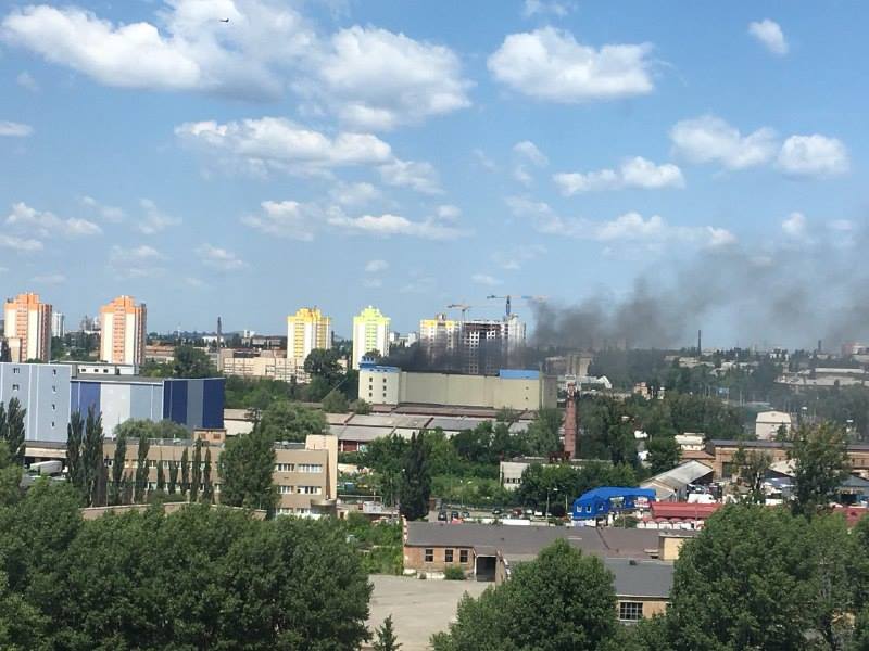 Сегодня, 5 июля, в Киеве по адресу бульвар Вацлава Гавела, 24 на Борщаговке вспыхнул сильный пожар. Загорелось четырехэтажное здание комбината "Прогресс". Клубы черного дыма окутали все вокруг. Площадь пожара - около 700 квадратных метров. Предварительно, горит крыша.