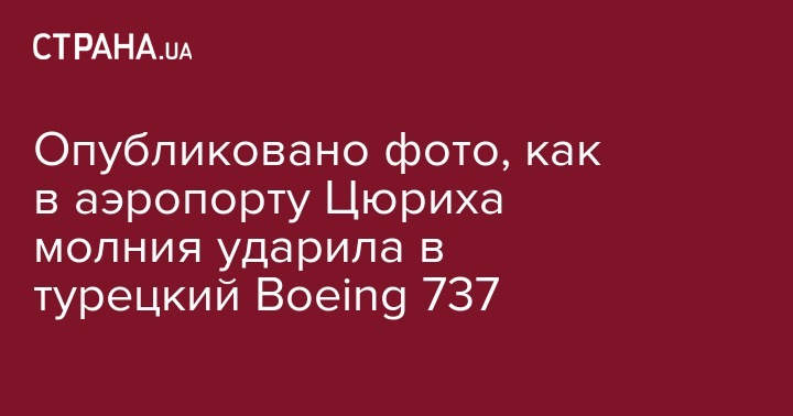 Опубликовано фото, как в аэропорту Цюриха молния ударила в турецкий Boeing 737