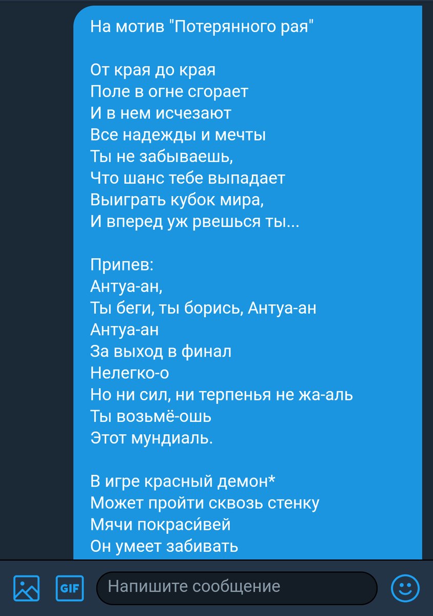 20.36 Некоторые уже сочиняют песни о сегодняшнем матче: