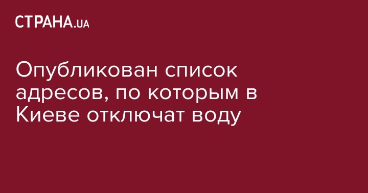 Опубликован список адресов, по которым в Киеве отключат воду