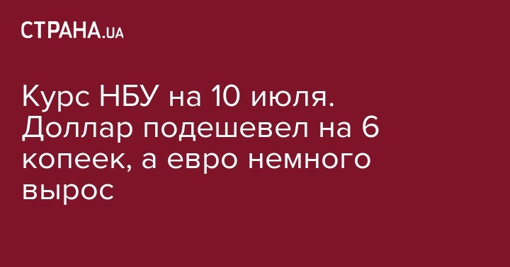 Курс НБУ на 10 июля. Доллар подешевел на 6 копеек, а евро немного вырос