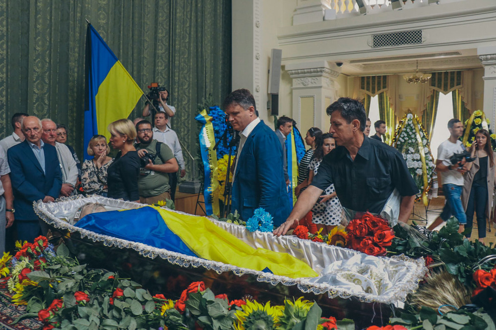 Все пришедшие принесли на траурную церемонию цветы, некоторые пришли с книгами, написанными диссидентом. На церемонию прощания прибыли премьер министр Украины Владимир Гройсман, Владимир Турчинов, Арсений Яценюк, Павел Розенко, Владимир Яворивский, министр культуры Евгений Нищук, украинский политический деятель, советский диссидент Степан Хмара, писатели братья Капрановы, Дмитрий Павличко, и.о. министра здравоохранения Ульяна Супрун, директор Института Нацпамяти Владимир Вятрович. Попрощаться пришли также и сотни неравнодушных людей.