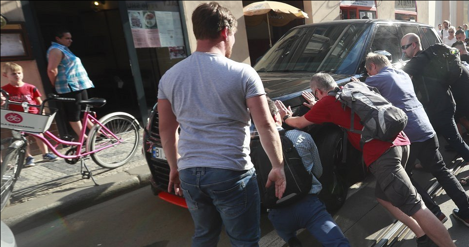 Автомобиль с украинскими номерами заблокировал трамвайное движение в центре Праги. Фото