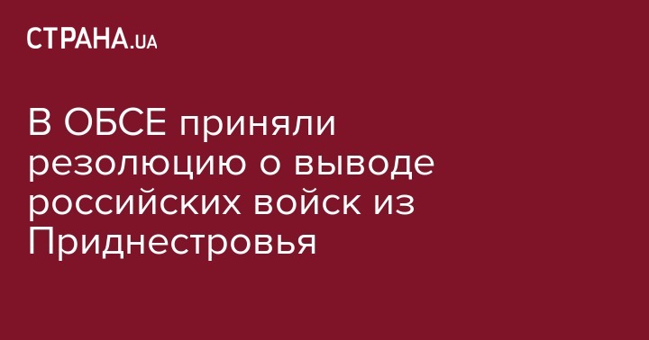 В ОБСЕ приняли резолюцию о выводе российских войск из Приднестровья