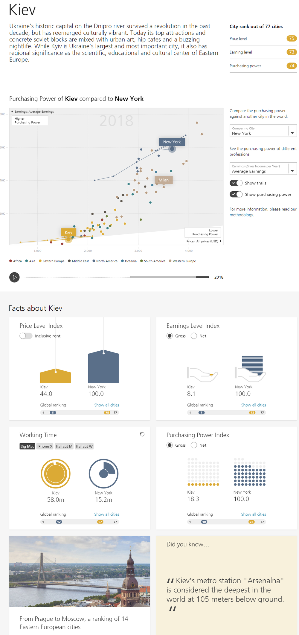 Украинская столица заняла место 75-е место рейтинга, что делает Киев одним из самых дешевых городов, входящих в число самых дорогих мест для проживания в мире.