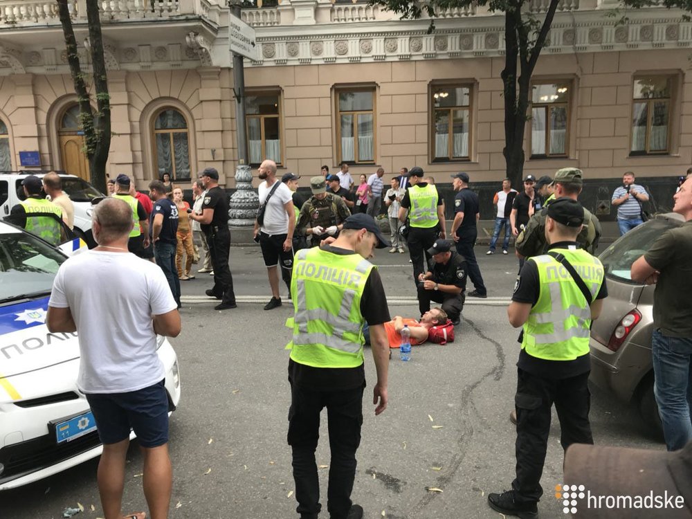 Мужчине на месте ДТП оказывали помощь сотрудники Национальной гвардии. На место происшествия приехала скорая и полиция. С женщиной, которая была за рулем авто, разговаривали правоохранители.