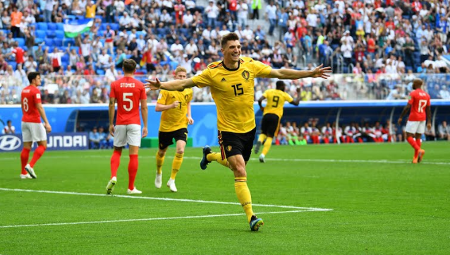 Игра началась активно. На четвертой минуте Бельгия открыла счет. Ромелу Лукаку зацепился за мяч после мощно паса вперед от бельгийского вратаря Тибо Куртуа. Затем мяч получил бежавший по левому флангу атаки Насера Шадли, который прострелил в центр английской штрафной. Первым к мячу дотянулся Тома Менье. Он коленом с пяти метров замкнул прострел Шадли.