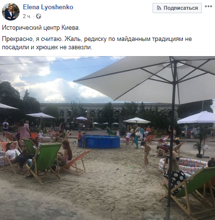 "Прекрасно, я считаю. Жаль, редиску по майданным традициям не посадили и хрюшек не завезли", - иронизирует адвокат Елена Лешенко на своей странице в Facebook.