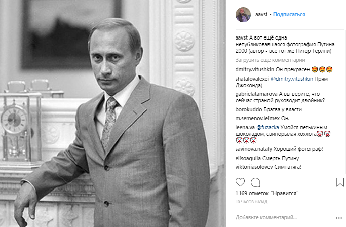Фотографии президента РФ Владимира Путина, которые были сделаны 18 лет назад, разместил на своей странице в Instagram главный редактор радио "Эхо Москвы" Алексей Венедиктов.