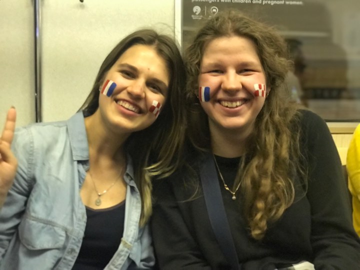 17:15  Молодые москвички нарисовали на лице флаги и Франции и Хорватии. "Не определились, за кого болеть? — Надо быть толерантными", — ответили девочки.
