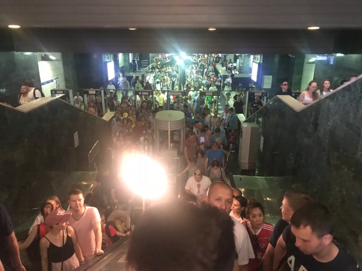 17:30  Вот это человеческое море сейчас хлынет из метро в фан-зону на Воробьёвых горах. Которую, кстати, уже закрыли на вход - предчувствуя такой наплыв болельщиков.