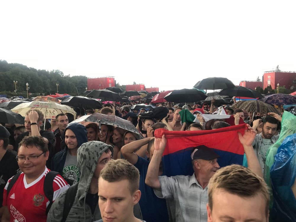 18:47  Фан-зона на Воробьевых горах болеет под дождем.