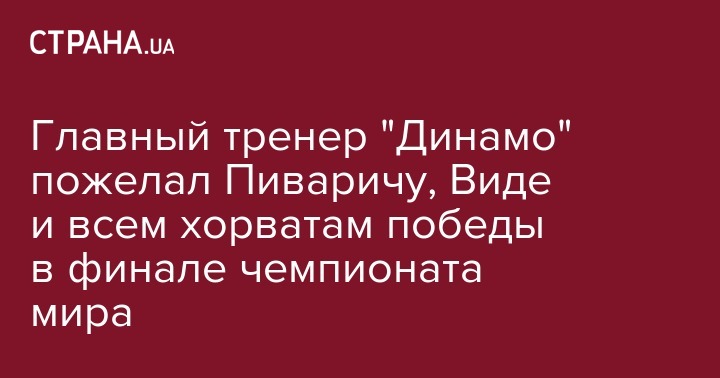 Главный тренер "Динамо" Александр Хацкевич, чья команда возвращается после сборов в Австрии, пожелал удачи в финальном матче чемпионата мира по футболу своему подопечному Йосипу Пиваричу, который выступает в сборной Хорватии.