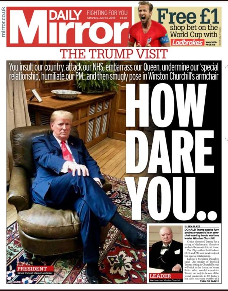 Субботний выпуск британского таблоида Daily Mirror вышел на первой полосе с оскорбительным заголовком "Трамп, да как ты смеешь?". Смысл заголовка объясняется тут же.